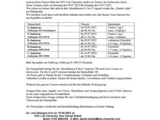 Große Ereignisse werfen ihre Schatten voraus. Am 09. und 10.Juli 2022 starten wir mit der 3. Auflage unseres Lok-Cups des ESV Lok Chemnitz auf dem Hohlweg. Eine gute Gelegenheit […weiter lesen…]