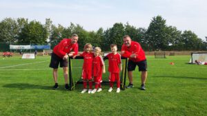 Die G-Junioren starteten zu ihrem Funino-Festival auf Feld 5 gegen VfL Chemnitz. Dieses Spiel und zwei weitere Begegnungen konnten sie im Stadion an der Jahnbaude für sich entscheiden. Trotz der 4 Niederlagen muss man den Jüngsten Respekt vor der gezeigten Leistung zollen, denn für Clea, Max und Pepe war es erst das zweite Festval, dass sie spielten.