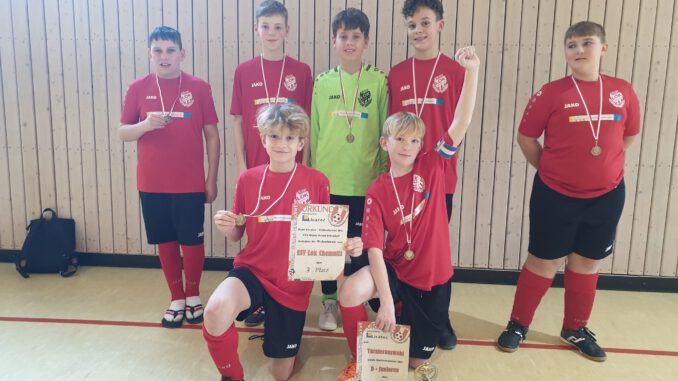 Die D1-Junioren belegten am Samstag beim Hallenturnier des FSV Motor Brand-Erbisdorf den 3. Platz. Eine unglückliche 0:1-Niederlage im Halbfinale gegen TSV Vater Jahn Burgstädt verhinderte eine bessere Platzierung. Unsere Junioren erspielten sich zahlreiche Tormöglichkeiten, die sie jedoch nicht nutzen konnten. Der Kontrahent deutlich effektiver. Mit der einzigen Chance im Spiel, sicherte sich Burgstädt den Finaleinzug. Diese Niederlage war die Einzige im gesamten Turnierverlauf, denn die anderen 5 Spiele wurden erfolgreich beendet.