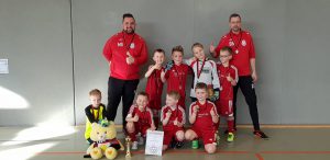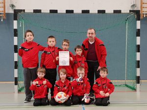 Unsere Bambinis hatten leider kein Losglück, denn mit dem CFC sowie FSV Burkhardtsdorf gleich zwei sehr schwere Gegner in ihrer Gruppe. Das Spiel gegen den CFC konnte man gleich als Vorbereitung auf die HKM-Endrunde sehen, die kommende Woche ausgetragen wird und sich beide Teams abermals gegenüber stehen werden. Mit einer 0:3-Niederlage gegen den Chemnitzer FC gingen die Bambinis vom Hallenparkett. Max erzielte im Spiel gegen den CPSV das einzige Tor in dieser Begegnung. Im Spiel gegen FSV Burkhardtsdorf trennte man sich torlos und belegte nach den Gruppenspielen den 3.Platz. Im kleinen Halbfinale gegen SV Barkas Frankenberg stand es nach regulärer Spielzeit 0:0. Nach einem Spiel auf Augenhöhe, musste die Entscheidung im 7m-Schießen fallen. Hier parierte Marlon im Tor zweimal grandios und hatte damit großen Anteil am 1:0-Erfolg. Mit einem 1:0 gegen SF Chemnitz-Süd belohnten sich unsere Bambinis nicht nur mit einem tollen 5.Platz, sondern auch für einen gelungenen und couragierten Auftritt bei diesem Turnier. Im Finale standen sich erwartungsgemäß die Teams vom Chemnitzer FC und TSV IFA Chemnitz gegenüber, wo sich der CFC klar mit 4:0 durchsetzen konnte.