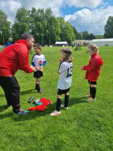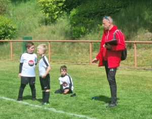 Team 2 startete mit Matheo, Philip und Henry auf Feld 4. Nach 7 Spielrunden fuhr das Team 3 Siege ein bei zugleich 4 Niederlagen. Auch hier waren starke Entwicklungen der Kids zu sehen und man konnte schöne Tore bejubeln. Am Ende standen auch hier 22 geschossene Tore auf der Trainermappe wovon Matheo mit 15 Toren unser Torschützenkönig war.
