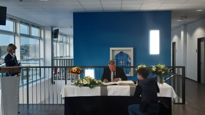 Die beiden verdienten Sportfunktionäre Heinz Kühn (SpVgg. Blau-Weiß Chemnitz 02 e. V.) und Dietmar Hunger (ESV LOK) haben sich am 20.Oktober 2020 ins Goldene Buch der Stadt Chemnitz eingetragen. Oberbürgermeisterin Barbara Ludwig würdigte ihr langjähriges Engagement an einem passenden Ort – im Stadion an der Gellertstraße. Die Auszeichnung fand nach einer Führung durch diese Sportstätte statt, die beiden Sportfunktionäre wurden damit überrascht.