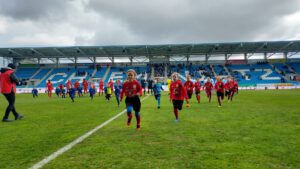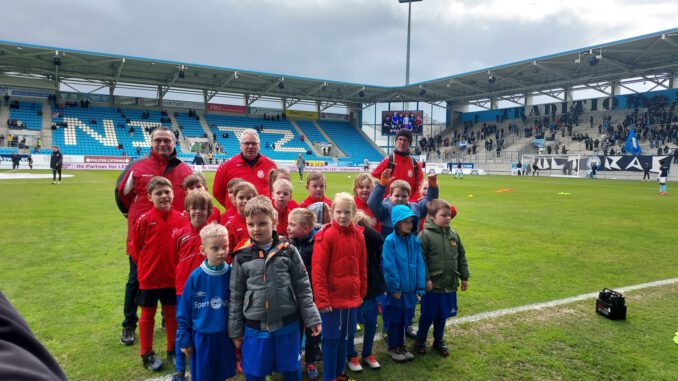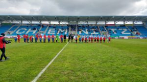 Unsere Mädchen und Jungs bekamen die Möglichkeit, beim Reginalligaspiel des Chemnitzer FC gegen FSV Optik Rathenow, Hand in Hand mit den Profis einzulaufen und das Stadion aus Sicht der Spieler zu erleben. Dies war schon ein aufregendes Gefühl für alle Kids.