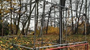 Diese Redensart symbolisiert sprichwörtlich das Projekt „Anzeigetafel auf dem Hohlweg“. Von der Idee bis hin zur Fertistellung wurden knapp 9 Monate benötigt. Die Inspiration kam zum Punktspiel unserer C1-Junioren im April 2023 auf der Beyerstraße. Die besten Ideen entstehen eben meist aus einer Bierlaune heraus. Es benötigte allerdings einige Zeit für die Planungen und deren Umsetzung. Auch die Frage der Finanzierung stand im Raum und musste im Vorfeld geklärt werden. Krankheit und Sommerurlaub verzögerten die Arbeiten am Projekt. Im August war es dann soweit. Patrick Weinelt setzte das Gerüst für die Anzeigetafel.
