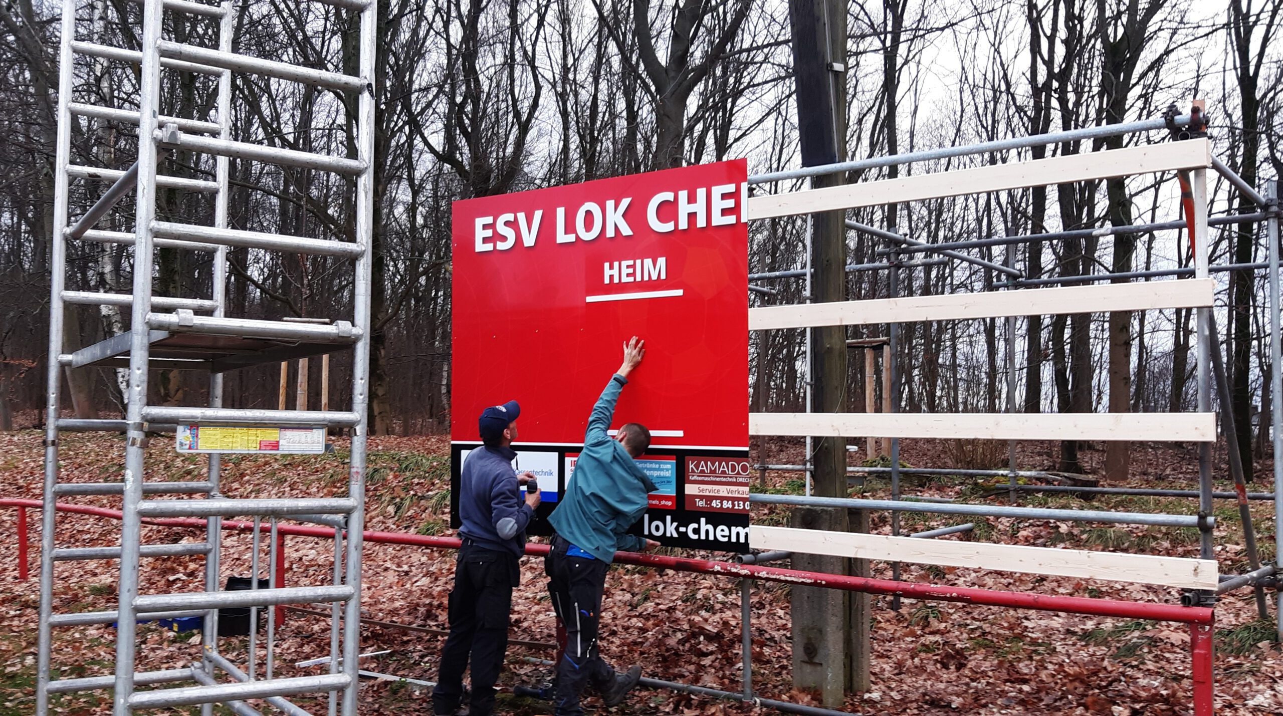 Anschließend nahm Lutz Gläser, Chef der Future Werbe-& Deko Agentur GmbH, Aufmaß und klärten mit ihm das Layout der Anzeige. Nach deren Fertigstellung war es nur noch eine Frage der Zeit, bis die Tafel angebracht wurde. Am 05.01.2024 wurde sie montiert. Die Anzeigetafel auf dem Gelände des ESV Lok Chemnitz ist ein echter Blickfang und „Hingucker“ und muss natürlich nun zu den Spielen auch „gelebt“ werden. Vorbei die Frage: „Wie steht es eigentlich?“